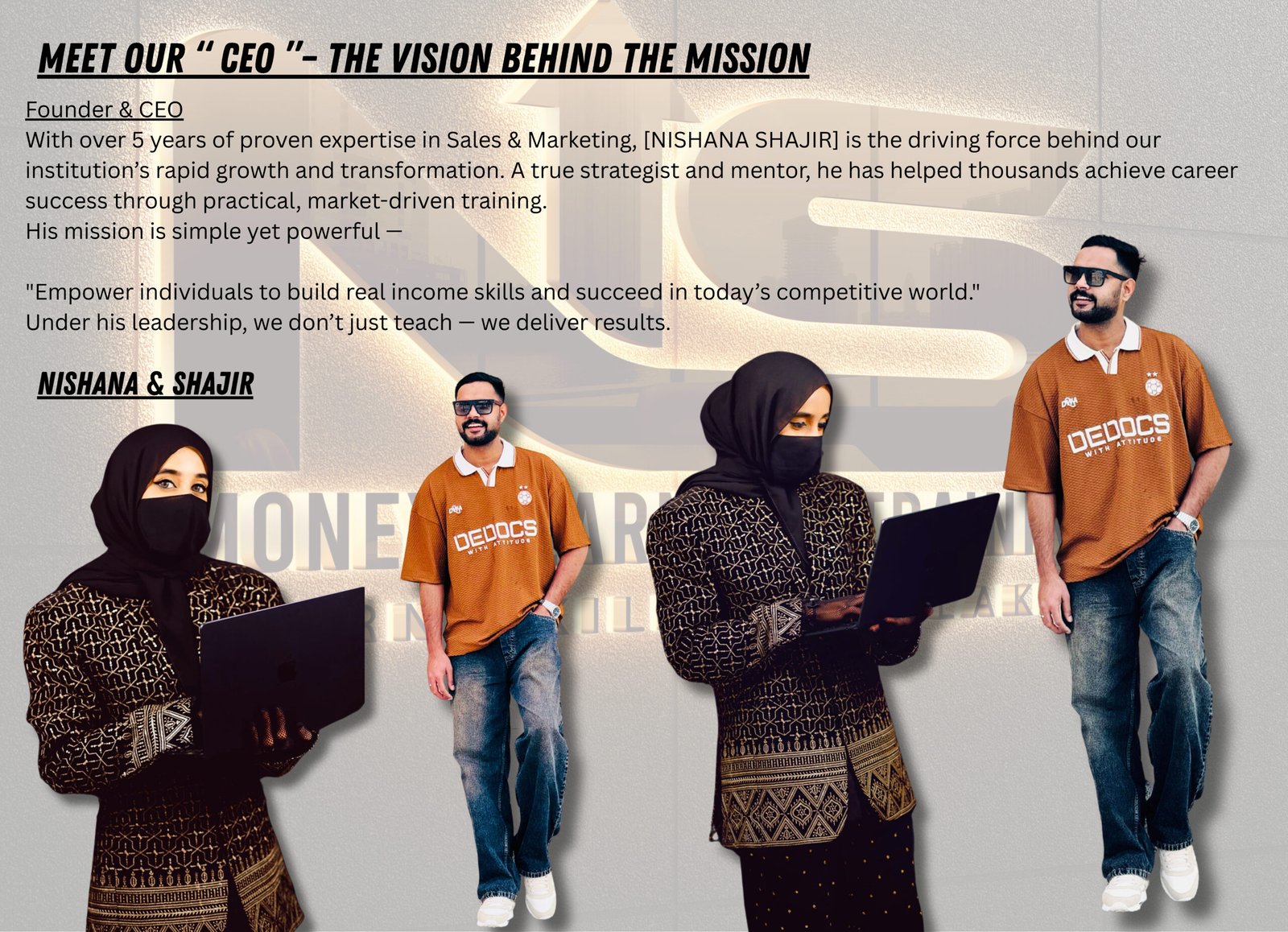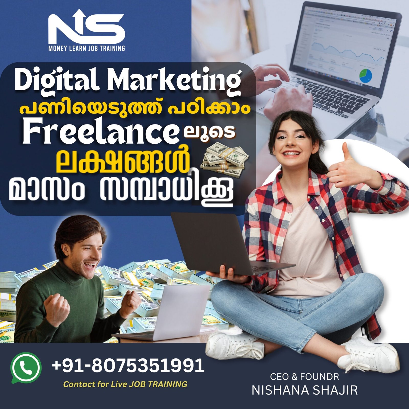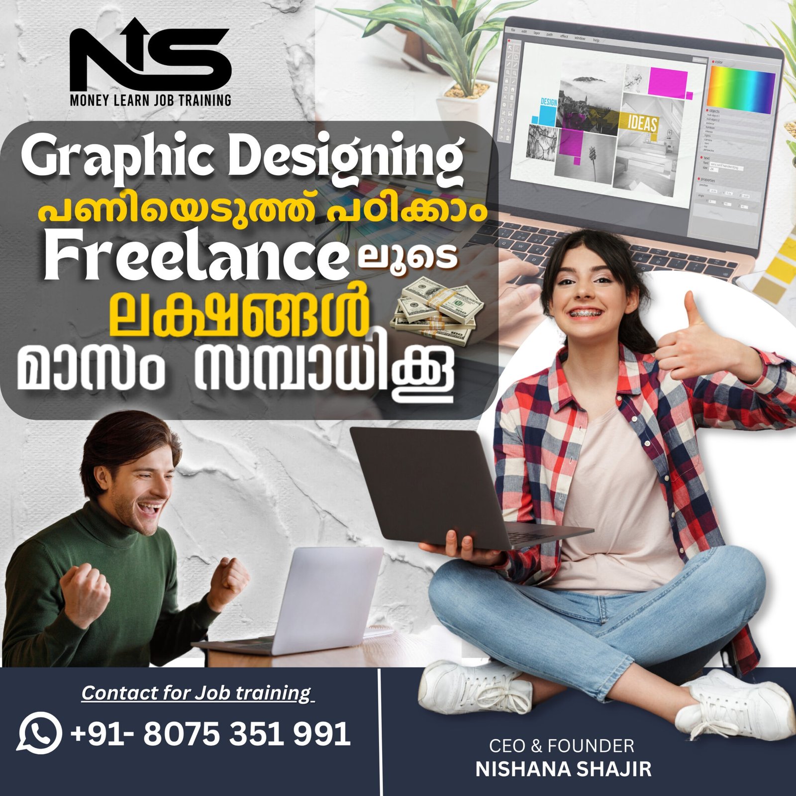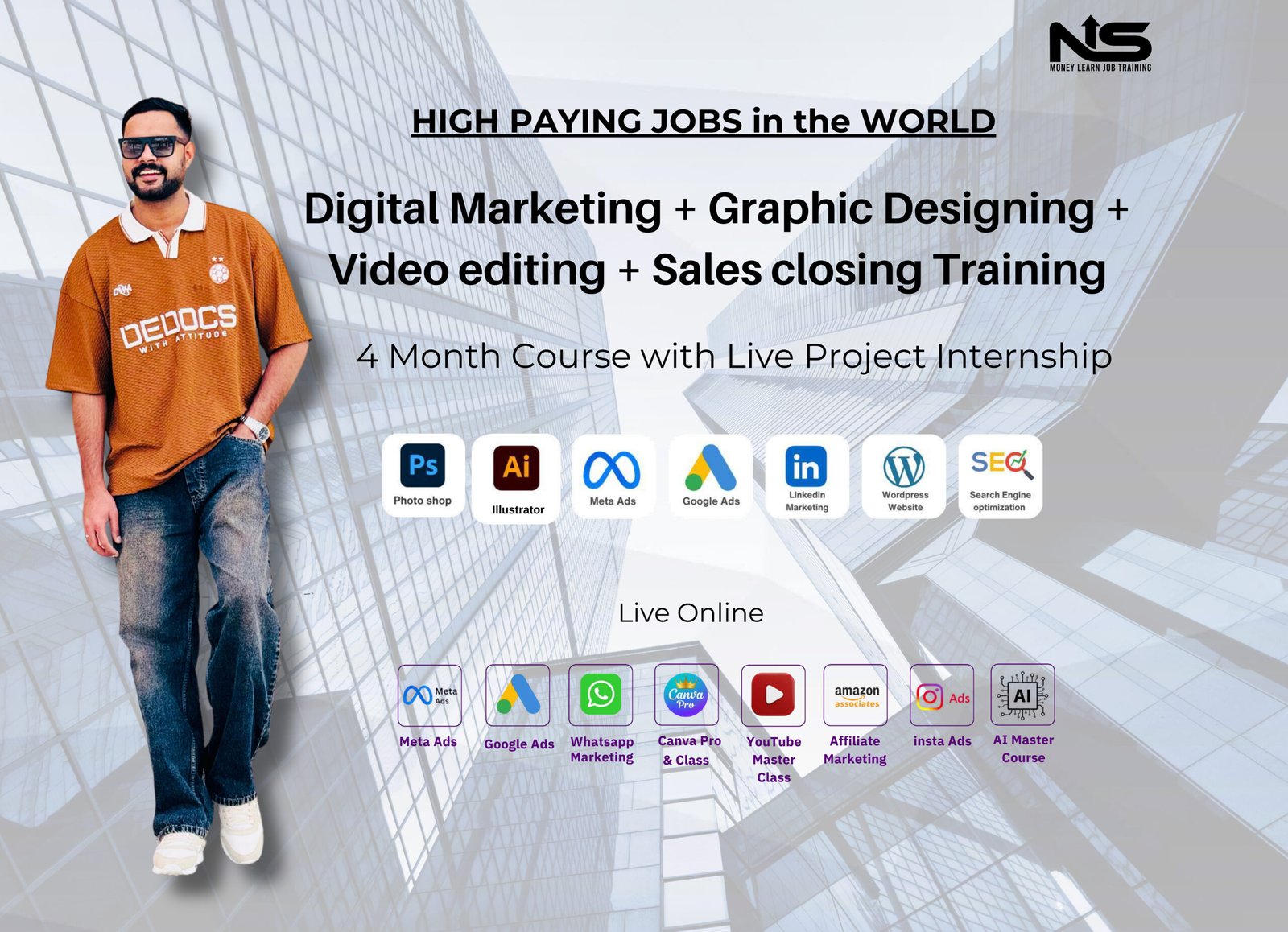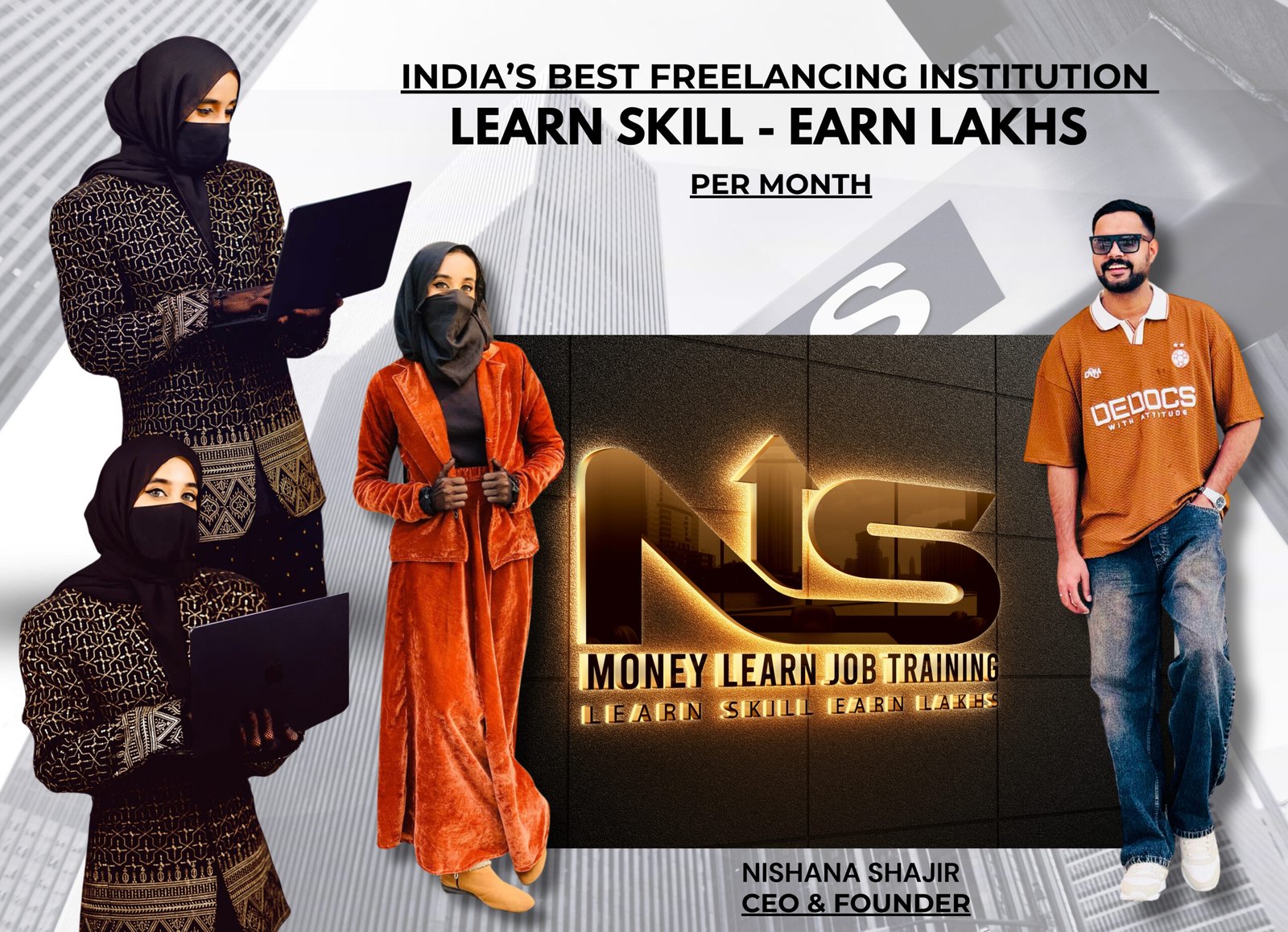 “At – NS – Money Learn Academy, we train you in some of the most in-demand and highest-paying freelancing careers in the world — including Graphic Designing, Video Editing, Digital Marketing, and Business Sales Closing. Our goal is to empower you with real-world skills that can help you build a high-income freelance career from anywhere.”